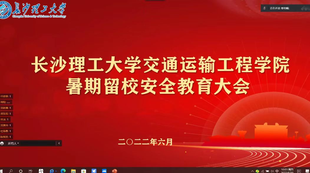 为了加强研究生暑期留校安全教育,6月30日上午,交通学院举行暑假留校安全教育线上会议,交通学院党委副书记涂道勇、研究生辅导员彭怡峰以及全体暑期留校研究生参加了此次会议。
