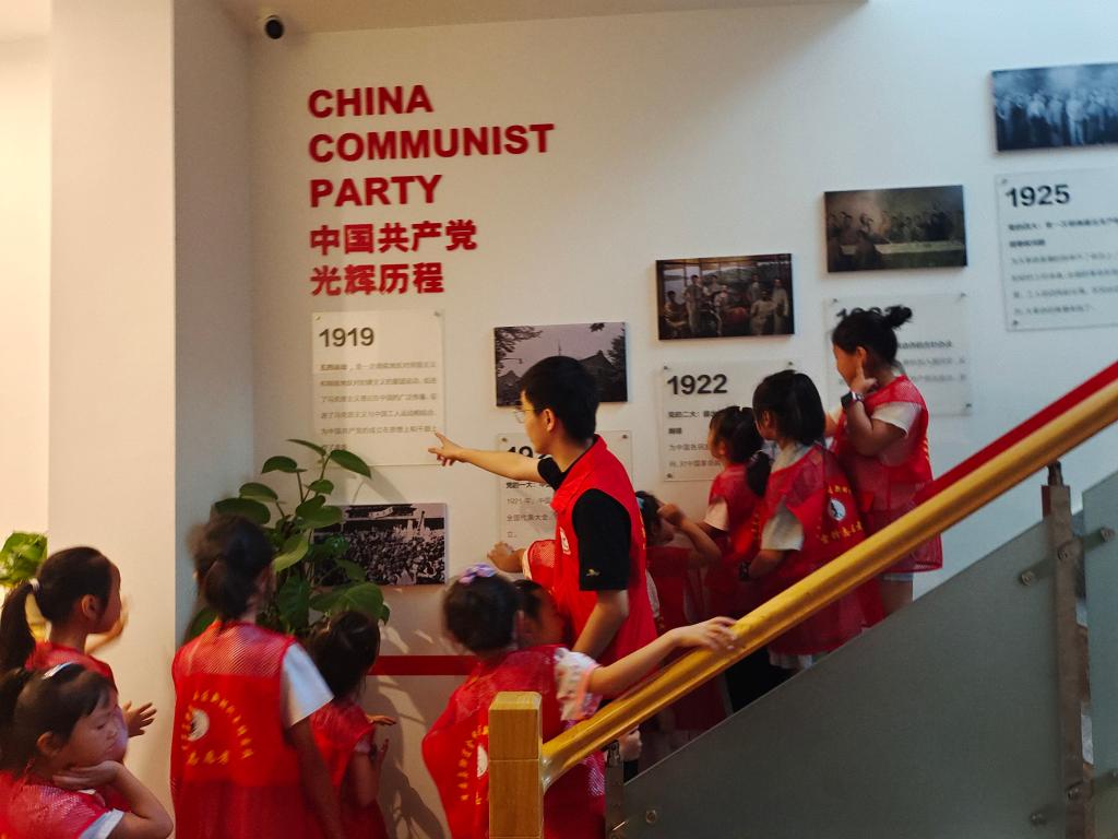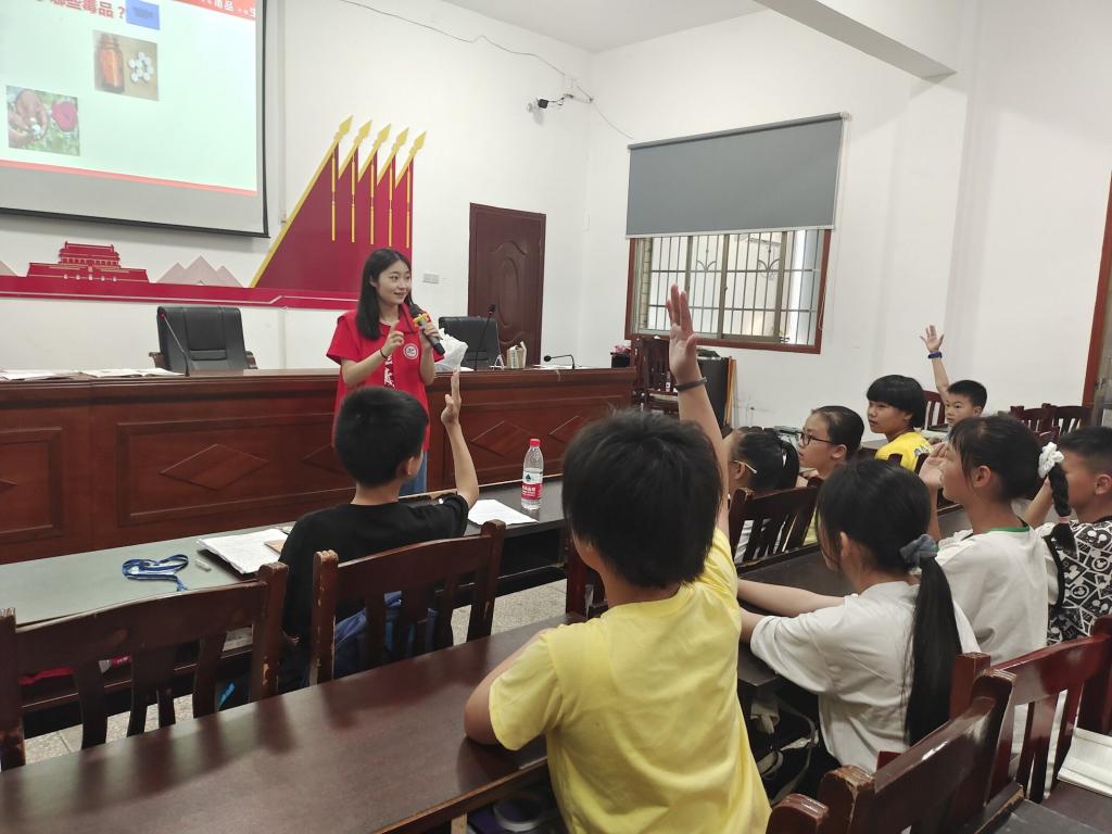 上午,志愿团用以“防毒品”为主题的安全教育视频,向孩子们普及了相关知识,通过知识问答的方式增强孩子们的防毒品意识,提升孩子们的自我保护能力。志愿者陈百慧给孩子们上了养老教育课,课程从主要概念、主要美德、法律责任、老年日、名言警句五个方面开展。随后,志愿者柳博文给同学们讲了雷锋的关于火车以及救灾的故事,同学们十分投入并深深被雷锋叔叔无私奉献、乐于助人的精神感染。志愿者刘荐畅带领同学们参观社区内的历史长廊,对中国共产党的光辉历程进行深入讲解。同学们紧跟老师的步伐,认真听讲,积极提问。
