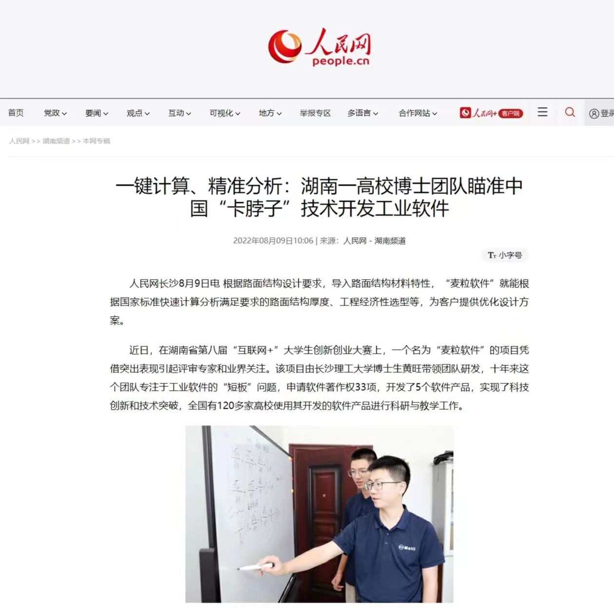 近日,我院博士研究生黄旺的创新创业事迹被人民网、光明日报、湖南日报等多家权威媒体广泛报道,“湖南一高校博士团队瞄准中国‘卡脖子’技术开发工业软件”、“这个团队,十年磨一‘件’”、“长理博士带队研发的工业软件打破国际垄断”等成为时下的教育领域新闻热点主题。报道推出后引发社会热烈反响,澎湃新闻、中国教育新闻网、腾讯网、新浪财经、今日头条、搜狐新闻、网易新闻、湖南在线、新湖南、华声在线、湖南教育新闻网等省内外媒体纷纷转发,全网阅读量超千万,不少网友为世界杯官网研究生勇于创新的精神纷纷点赞。