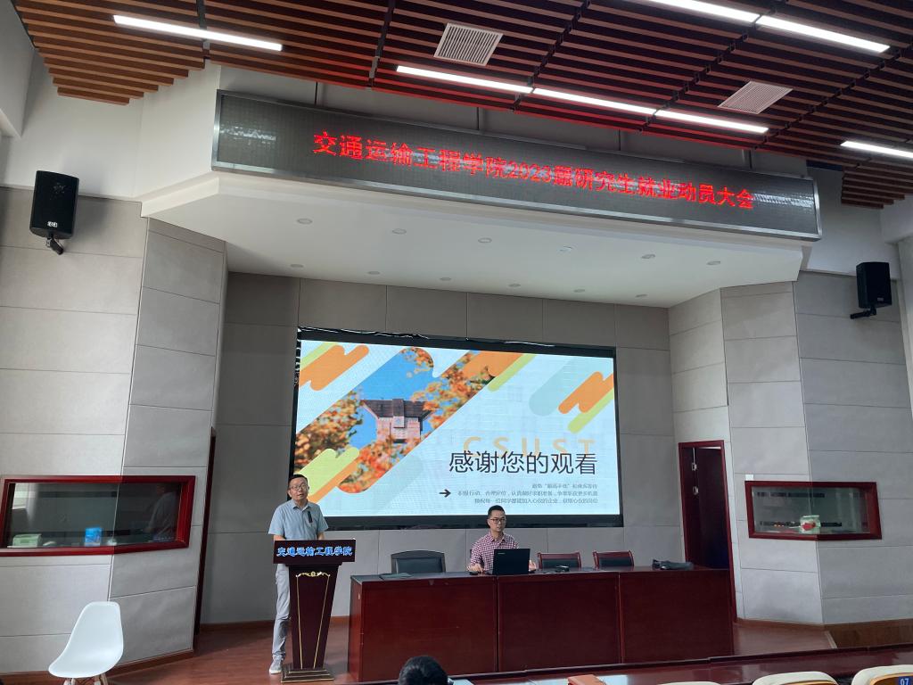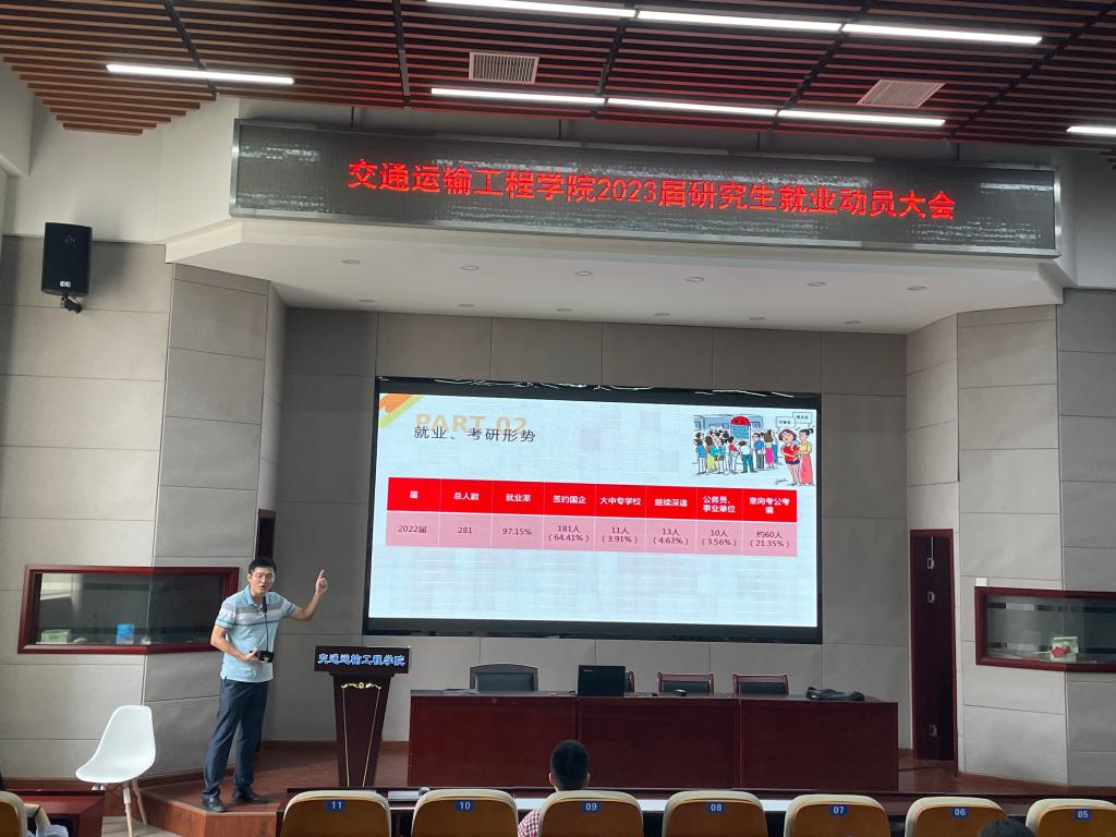 9月1日上午,交通学院在工二B301召开2023届研究生就业动员大会。交通学院党委副书记涂道勇、就业专干李特超、研究生辅导员彭怡峰和2023届全体研究生参加会议。