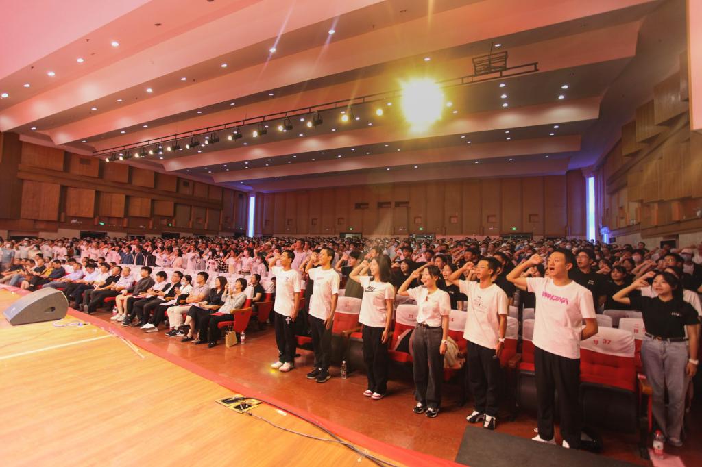 典礼上,刘朝辉与张锐为新生班主任、下班党员干部颁发聘书,代表学院对班主任、下班研究生、下班党员干部表达衷心的祝愿。校优秀班主任、新生班主任代表谢娟表示:“作为新一届交通青年的青春引路人、成长路上的导师、人生途中的益友,我们一定时时陪伴和引领2022级新生成长成才,让他们成为有理想、有本领、有担当的新时代国家栋梁。”现场掌声过后,全体教官上台,由新生代表向他们赠送交通青年文创等礼品,表达对教官在新生军训中赤诚付出与无私奉献的衷心感谢。随后,韦辰睿同学带领2022级全体新生,宣读《交通青年誓词》,立志奋发图强、无私奉献、锐意进取,以实际行动回报亲人、回馈学校、服务社会、报效国家。