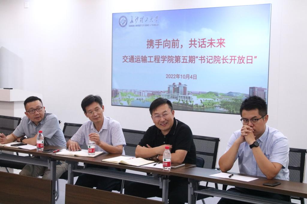 “学校体育馆平时对外开放吗?”“课程安排我们会跟排课老师协商”……这是书记院长开放日座谈会上的一幕。为深入了解学生的思想动态、生活实况,10月4日晚,交通学院于云塘校区交通青年学生社区一站式服务大厅召开第五期书记院长开放日座谈会。交通学院党委书记刘朝辉、院长张军辉出席会议,党委副书记涂道勇主持会议,团委书记彭笠、22名学生代表参加会议。