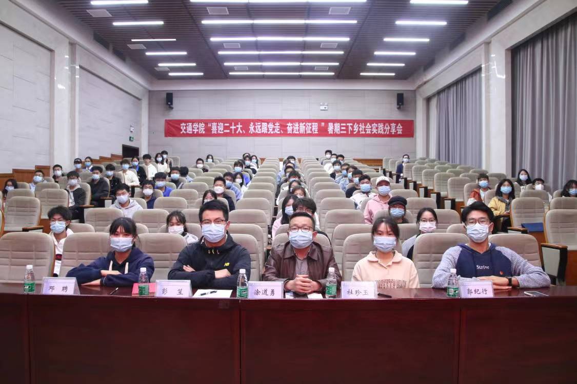 10月11日晚上,交通学院于云塘校区工科二号楼B-301举行了“永远跟党走,奋进新时代”为主题的2022年暑期三下乡社会实践分享会。本次会议由交通学院团委组织部成员康赵坤主持,交通学院党委副书记涂道勇、交通学院团委书记彭笠出席会议,交通学院所有暑期三下乡社会实践学生团队参加。本次暑期三下乡社会实践共计1085个团队、1600余人,提交了近1200份调查报告,共计250万余字。