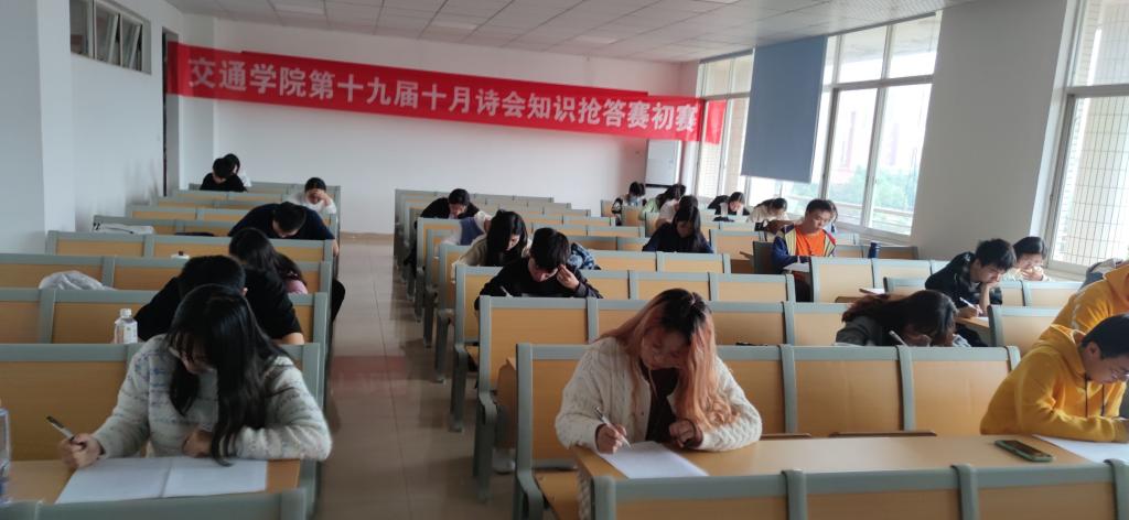 为热烈庆祝党的二十大胜利召开,加强同学们对党的二十大精神的学习与理解,提高同学们对时事的关注度,交通学院团委学习部于10月29到30日组织举办了第十九届十月诗会之“青春献礼二十大,强国有我新征程”抢答大赛初赛。