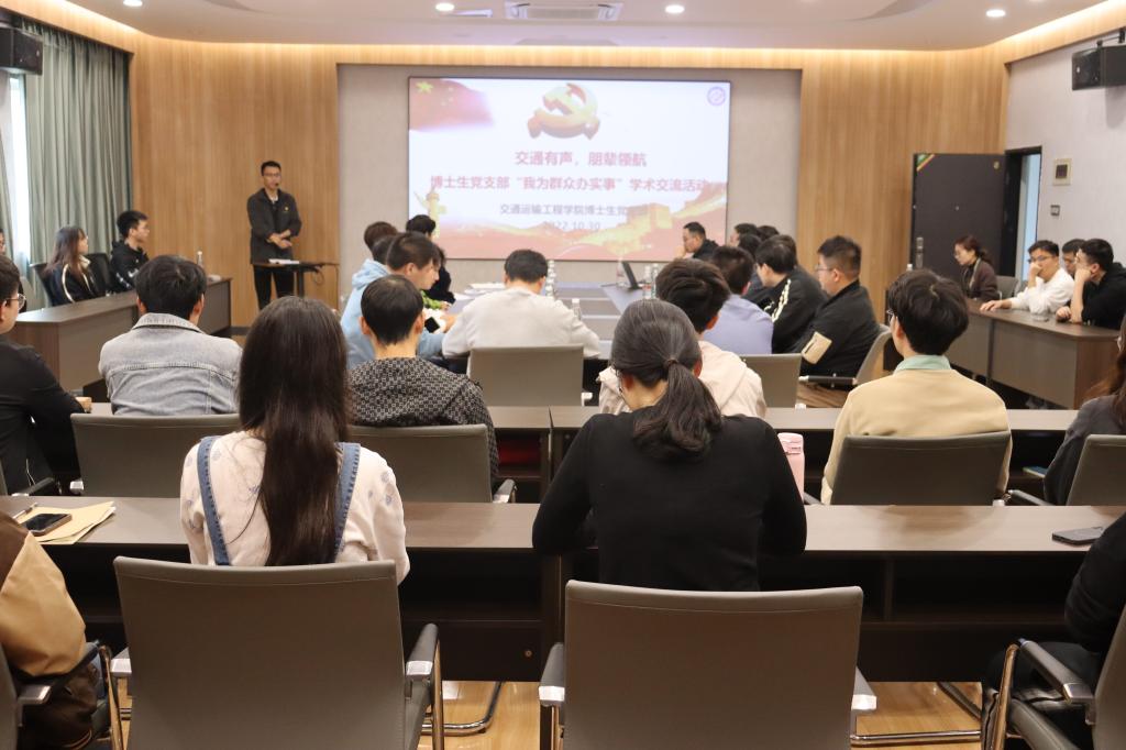 10月30日下午,在线买世界杯平台交通学院“交通有声,朋辈领航”之“我为群众办实事”活动在云塘校区公路工程实验中心开展。现场,博士生党支部精心准备了学术“大礼包”,吸引了众多博士和硕士参加。