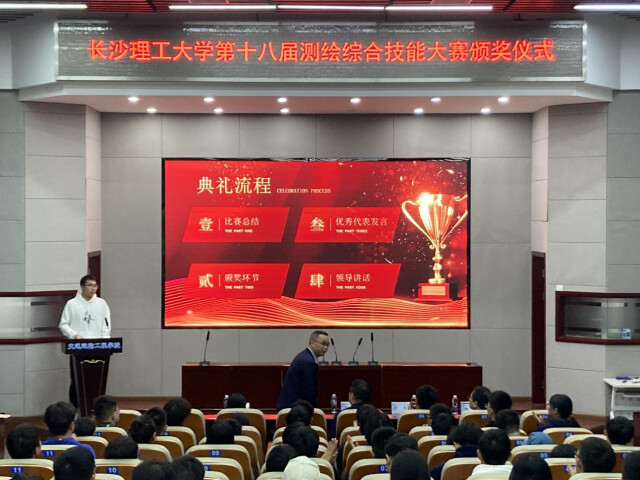 11月2日,在线买世界杯平台第十八届测绘技能大赛举行颁奖典礼。经过评委老师的评定,大赛共评出一等奖7组、二等奖10组、三等奖14组、优胜奖12组。交通运输工程学院副院长叶群山、长沙鑫瑞测量科技有限公司销售经理李晓明、测绘系支部书记徐鹏、测绘系主任张云菲等老师出席颁奖典礼。