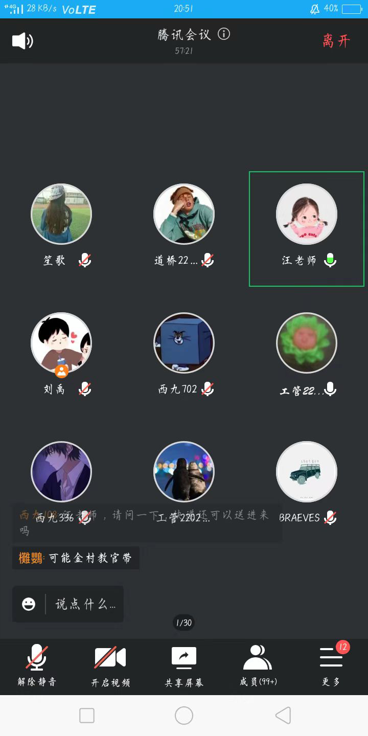 会议伊始,刘禹总结了近期金盆岭校区的疫情情况,并就现阶段防疫要求做了基本部署。他强调,错峰流动,减少人员聚集,并传达了开设线上课堂,关闭公共密集场所的基本要求。随后,涂道勇对校园管理要求做了进一步的阐述,鼓励同学们主动与老师同学交流,积极调整状态,安排好自己的学习与生活,从细节上拉开差距。其中,他严格要求同学们不信谣,不传谣,理性对待网络舆论,正当发言,展现出交通学子应有的责任意识与正义感。最后,同学们纷纷提出疑虑,“快递还可以送进学校吗?”“教学计划会不会变动?”“实验课程如何安排?”,汪招霞对其进行了一一解答,“学院会尽全力满足同学们的基本生活要求与物资所需,落实后勤保障,同时,同学们也不要松懈,认真对待网上课程的学习,完成教学任务,以充分的准备,最好的精神状态来迎接期末考试”,她对同学们说到。