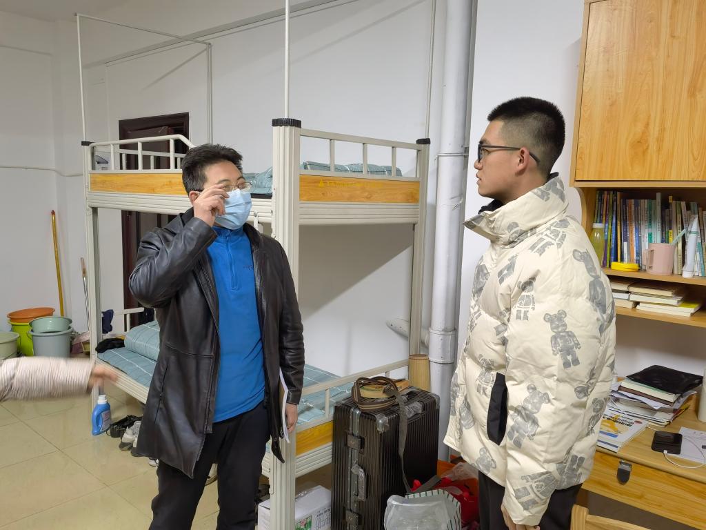 每到一个宿舍,领导老师都会与同学们进行亲切的交谈,关心同学们日常生活有哪些困难、英语四六级与期末考试的复习进度如何、是否准备充足的入冬物资等,并且再次强调了考风考纪、期末考试调整等问题,让同学们严格注意在考场上的行为规范。在交谈过程中,领导老师们还仔细检查了宿舍中的各项设施是否完好,是否有安全隐患等,并进行相关记录。