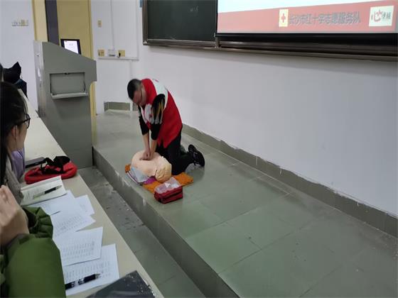活动当日,红十字协会工作人员对参与同学进行了心理测试并就现场急救技巧进行了讲授。培训过程中,工作人员介绍了一些突发状况的急救方法和急救电话的使用方法,并现场进行了心肺复苏演示,让同学们了解到在突发情况时该如何进行自救和援助。接着,工作人员对艾滋病的病因、传播途径、预防方法等方面以及国家对“防艾禁毒”的相关法律法规进行了详细的讲解,并列举了一些因贩毒、吸毒、注射毒品而走向犯罪道路或因注射毒品而感染艾滋病的实例,同学们积极提问,认真做好笔记,纷纷表示受益匪浅。防艾禁毒志愿者樊敏同学表示:“通过这次讲座,我学到了很多急救知识,以及怎样预防艾滋病和毒品,无论在任何时刻,都要保护好自己,生命至上。”