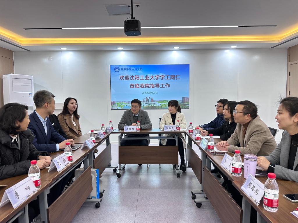 会上,涂道勇对沈阳工业大学学工同仁来我院考察交流表示了热烈的欢迎,并介绍了交通学院基本情况、学生工作重要举措、“一站式”学生社区建设经验。接着,唐青就经管学院学生特点、学生工作及重点举措进行了详细介绍,刘文成对土木学院学生工作主要情况、学科竞赛等方面进行了介绍。随后,双方就样板党支部建设、辅导员素质能力大赛经验、学生日常工作的重点难点、学生招生就业等工作进行了详细的探讨。