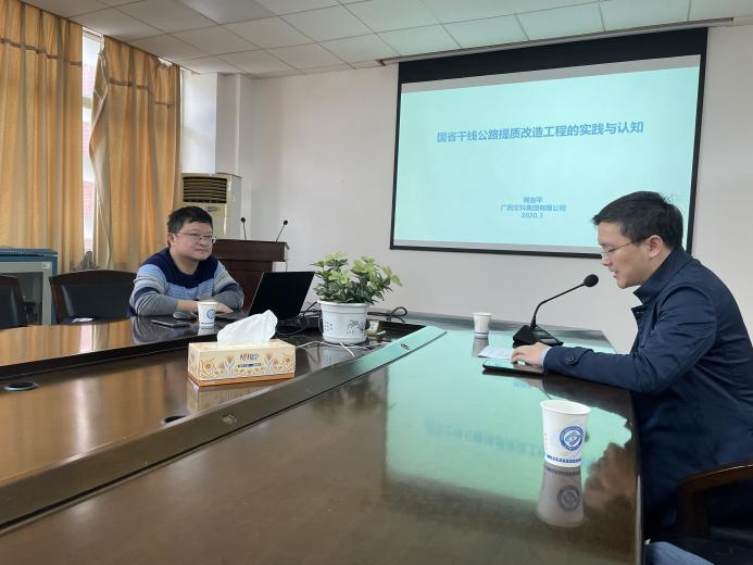 2023年03月31日下午,广西交科集团总工程师,广西“邕江计划”和南宁市"特聘专家岗位”带头人熊剑平博士围绕“国省干线公路提质改造工程的实践与认识”主题为交通运输工程学院100余名师生举行了学习座谈会,教务处李平副处长、学院张锐副院长参加了座谈。座谈会上,张锐副院长首先向参会的老师和同学介绍了熊剑平总工,并对熊剑平总工的莅临指导表示热烈欢迎,接着进行座谈会的内容阐述,本次座谈会主题进行发言和提问互动两个环节。