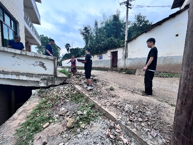 在茶田村,实践团与当地居民就道路相关问题进行了深入交流,并邀请村民填写调查问卷。根据村民们反馈的问题,实践团对预先的调研计划进行修改,重点关注当地居民认为问题严重的几段道路。