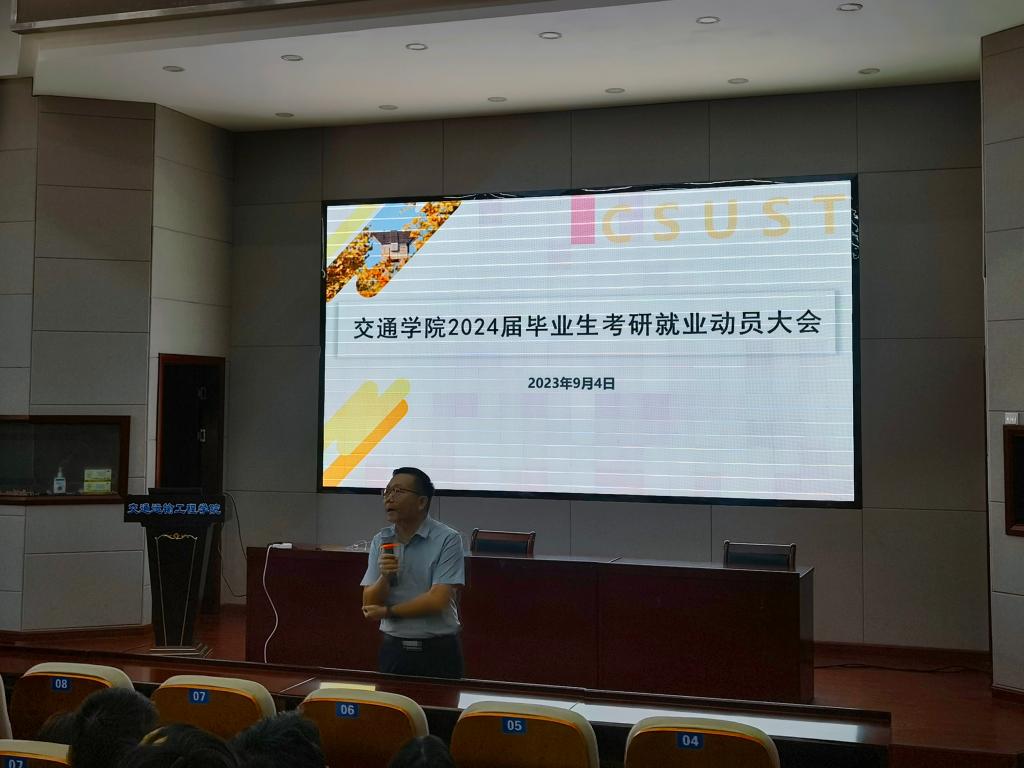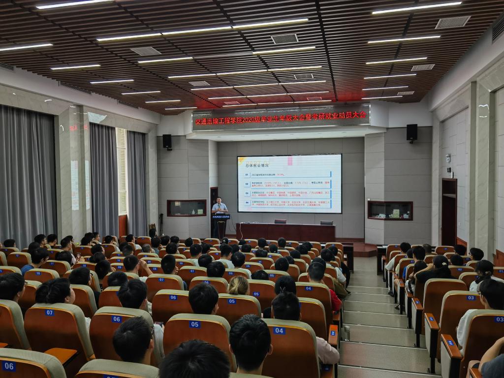 党的二十大报告提出:“强化就业优先政策,健全就业促进机制,促进高质量充分就业。”,高校大学生是宝贵的人力资源,高校毕业生就业对于整体就业形势有着重要影响。为提高2024届毕业生就业主动性和积极性,破除考研就业信息壁垒,引导毕业生树立正确的考研就业心态,交通学院于9月4日上午在云塘校区工科二号楼B-301召开2020级毕业生年级大会暨考研就业动员大会,交通学院党委副书记涂道勇、学工办2020级辅导员李特超、学工办2020级辅导员冯心崚,学院2020级全体学生参与本次会议。