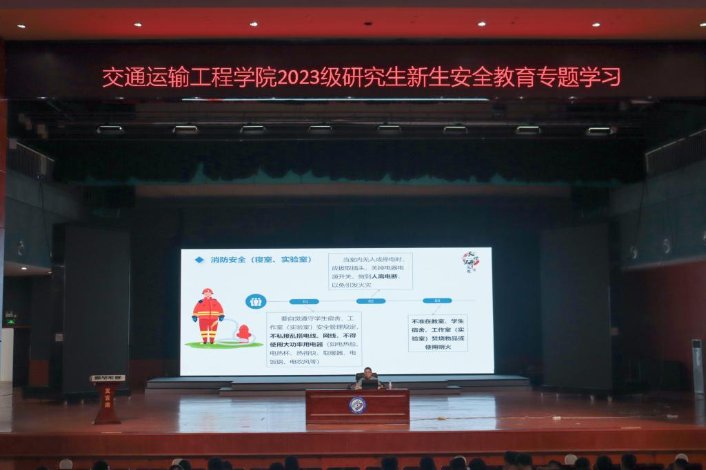 9月20日下午,交通运输工程学院在云塘校区大会堂举办2023级研究生入学安全教育专题讲座,本次讲座由研究生辅导员周浩主讲,2023级全体研究生新生参加。
