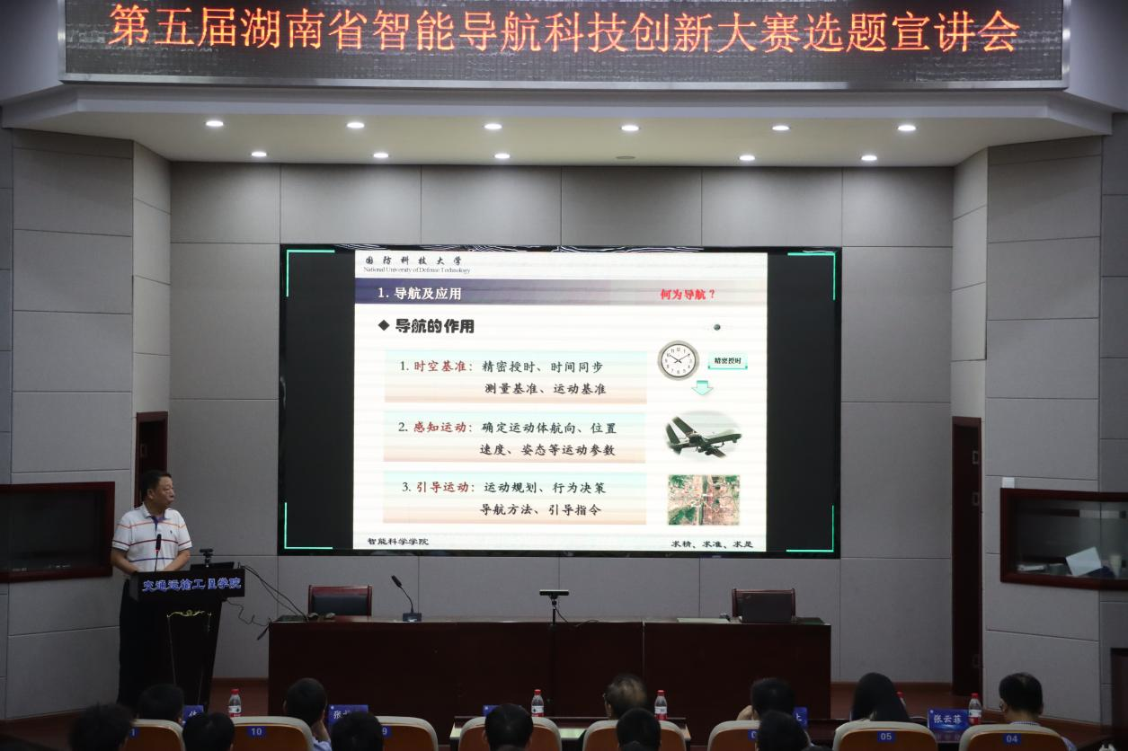 9月27日下午,第五届湖南省智能导航科技创新大赛选题宣讲会于在线买世界杯平台云塘校区落下帷幕,本次宣讲会由湖南省大学生智能导航科技创新大赛组委会主办,在线买世界杯平台交通运输工程学院承办,在线买世界杯平台测绘协会协办。国防科技大学教授胡小平、长沙北斗产业安全技术研究院院长胡斌、国防科技大学教授张礼廉、长沙北斗产业安全技术研究院助理许伟、长沙北斗产业安全技术研究院经理宋倩,交通运输工程学院教学实验中心主任叶群山、测绘系党支部书记徐鹏、测绘系副主任张云菲、交运系老师高志波受邀担任嘉宾,共计100余名参赛选手参加。