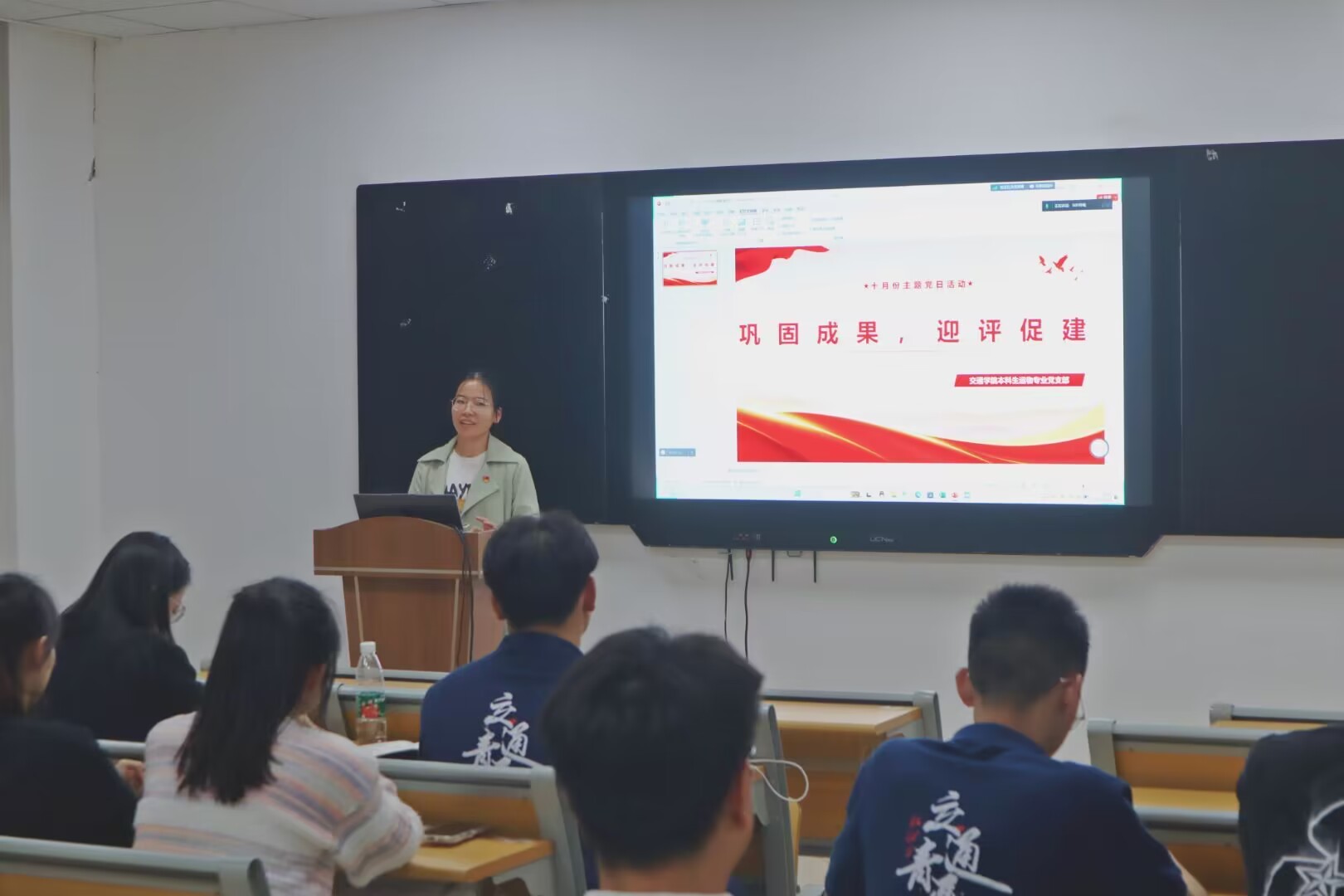 10月中下旬,交通学院各学生党支部相继开展了“巩固成果,迎评促建”主题党日活动,就习近平总书记近期重要讲话、本科教育教学审核评估应知应会内容进行了集中学习。
