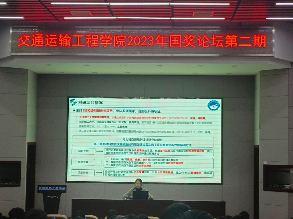 11月29日晚,交通学院2023年国奖论坛第二期在工科二号楼B301大厅举行,交通学院研究生辅导员周浩出席,180余名研究生参与论坛。本期国奖论坛的主讲人为谢娜斯和郑廷祥。