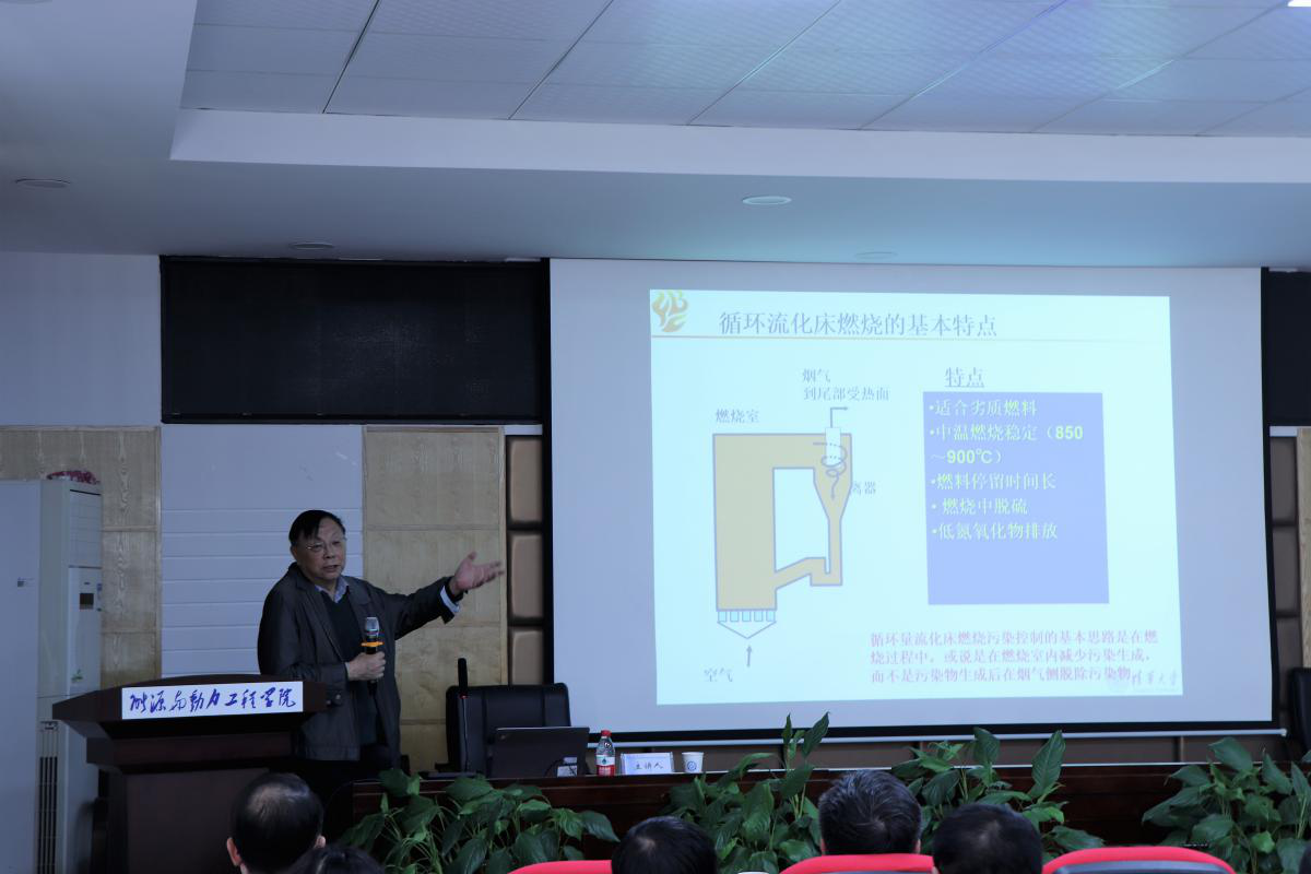 本次分论坛开幕式由能动学院党委书记陈冬林教授主持,中国工程院院士、清华大学机械工程学院能源与动力工程系教授、博士生导师岳光溪院士主讲《燃煤热电及供热循环流化床锅炉的污染控制》。