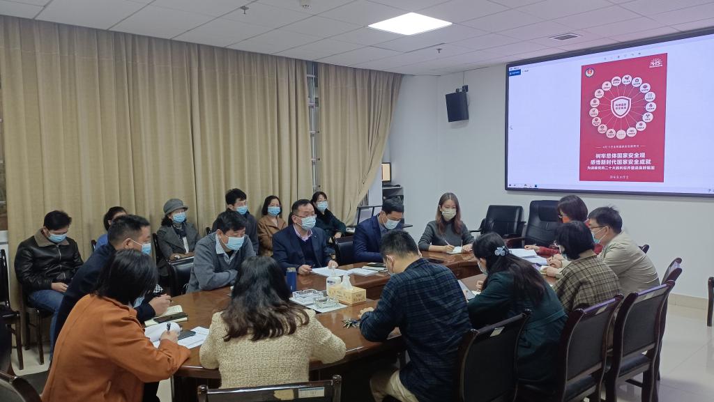 为增强国家安全意识和法治意识,为党的二十大胜利召开营造良好氛围,4月15日上午,教务处党支部在学校党委的指导下,在一办A103党员活动室组织主题宣传教育活动。