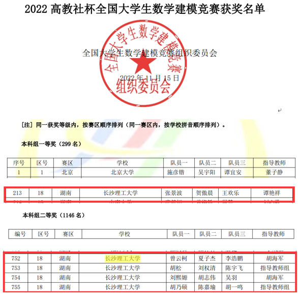 近日,“高教社杯”2022年全国大学生数学建模竞赛成绩揭晓,世界杯官网获全国一等奖1项,二等奖4项,省级奖26项(其中省一等奖7项)。近三年,世界杯官网连续获得该赛事全国一等奖。