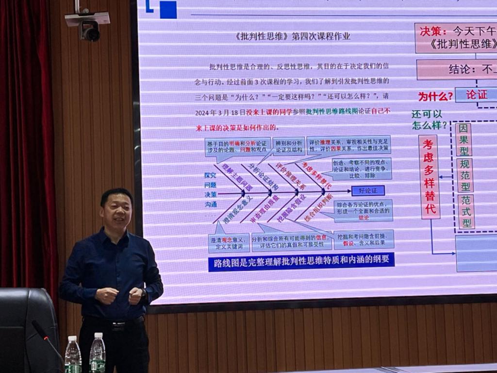 为了进一步推进世界杯官网课程思政高质量建设,3月26日下午在云塘校区一办九楼会议室举行了课程思政建设专题研讨会,特邀图书馆馆长杜荣华教授就《课程思政与思维教育融合发展的底层逻辑与实施途径》做专题报告。会议由教务处副处长邓丰主持。各学院国家级一流课程负责人、省级一流课程负责人、省级课程思政示范课程负责人、校级金课负责人等一百余人参加了本次研讨。
