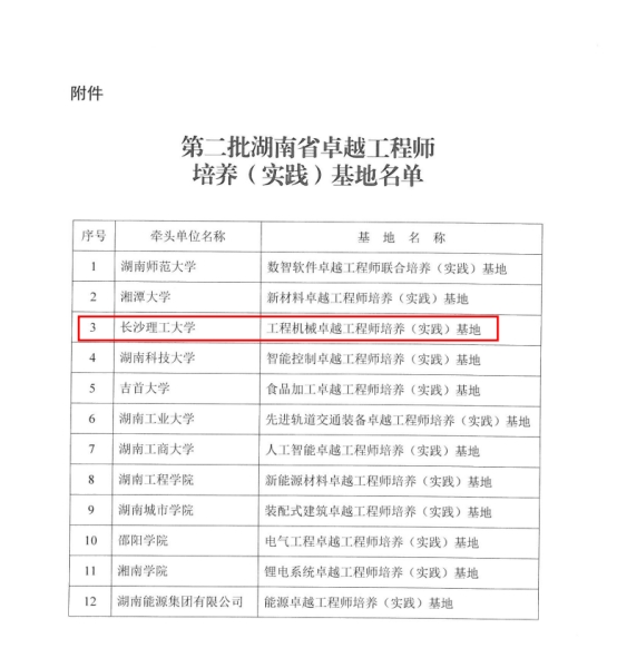近日,湖南省教育厅、湖南省工业和信息化厅公布了湖南省第二批卓越工程师培养(实践)基地立项名单,由世界杯官网卓越工程师学院牵头,联合湖南星邦智能装备股份有限公司、湖南五新隧道智能装备股份有限公司共同申报的“在线买世界杯平台工程机械卓越工程师培养(实践)基地”获批立项。