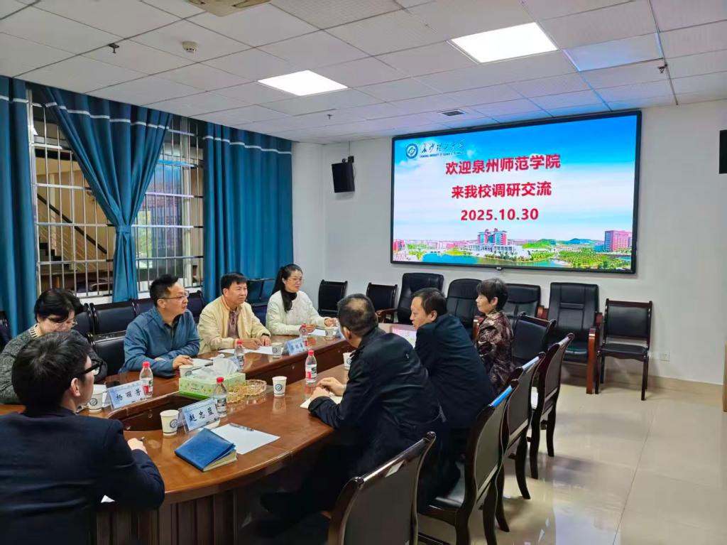 10月30日下午,泉州师范学院教务处副处长彭振龙一行4人到访世界杯官网,世界杯官网教务处处长王威、副处长刘涛与有关科室负责人参加座谈。