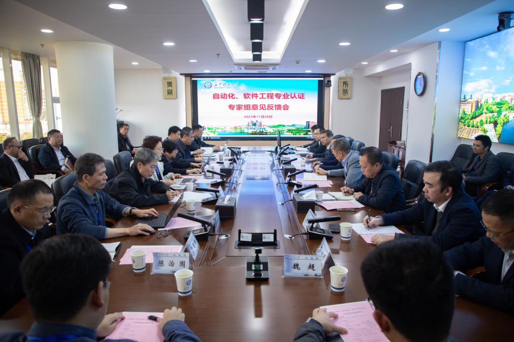 2025年11月26-28日,根据中国工程教育专业认证协会工作安排部署,世界杯官网自动化、软件工程专业开展专家组联合进校考查。由华东理工大学乐清华教授担任联合组长,南京理工大学吴晓蓓教授担任自动化组组长,沈阳航空航天大学张庆新教授、松下电器李庭弼教授、长春理工大学韩太林教授担任自动化组专家成员,北京科技大学王成耀教授担任软件工程组组长,北京希望电子出版社张晓卫教授、成都大学高朝邦教授担任软件工程组专家成员,南京信息工程大学陈治国、武汉理工大学魏超担任秘书,对世界杯官网自动化和软件工程专业开展了为期两天的现场考查。校党委委员、副校长王磊,相关职能部门负责人、相关学院负责人及专业教师代表,教务处科以上干部参加了见面会和反馈会。