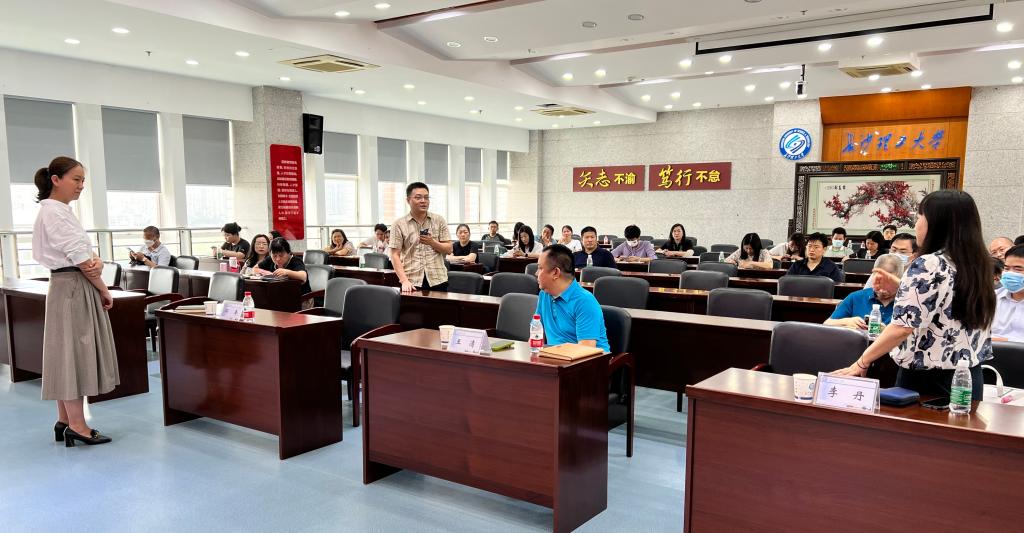 王清教授着重介绍了《设计思维与创新实践》这门课程的三大创新特色:一、思政引领发展;二、创新引导思维;三、实践提升能力。他还向在座的各位教师展示了如何在实践类课程中融入课程思政元素。李丹副教授还重点介绍了提升在线开放课程校内校外影响力的相关方法,她表示课程观看量及互动交流的数据都是评审专家重点关注的指标,也需同步重视。经验分享结束后,专家和参会的老师们开展了热烈的讨论。老师们积极的向专家咨询自己在课程建设过程中遇到的问题,专家们对如何解决这些问题也提供了切合实际的指导性意见。