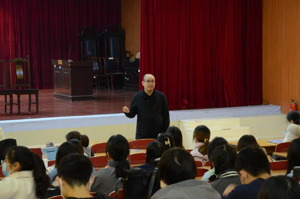 庭审开始前,申纯老师先向同学们介绍了基本的案件情况,并要求同学们对照课堂上所学的法律知识,带着问题用心听审。随后天心区人民法院钟真法官用真实案例的讲解,为同学们讲解了贩卖毒品罪、容留他人吸毒罪等犯罪构成要件以及司法实践情况。容留他人在自己住所吸毒、副驾驶座吸毒等结合现实的讲解,让同学们在庭审前对庭审内容、庭审涉及罪名有了一定的了解。“识危害明辨别、守防线不盲从、既慎友也慎毒、心阳光自乐观”钟法官用简洁有力的方式,教给同学们应对毒品的正确做法。