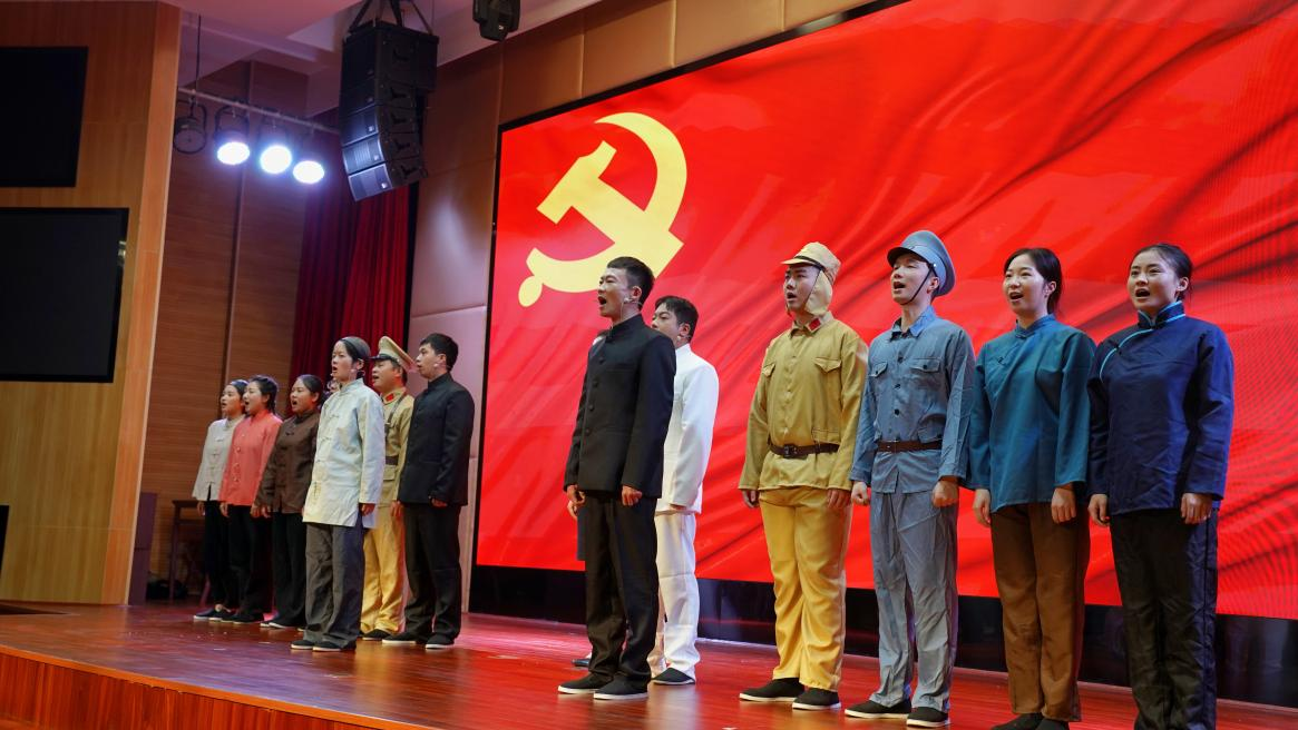 在观看话剧《走出炭子冲》中,同学们看到了青少年时期的刘少奇热爱学习、怀抱梦想、追求真理、立志救国成长经历的生动再现。“少年智则国智,少年富则国富,少年强则国强,少年独立则国独立……”当话剧中的刘少奇进入学堂后读到《少年中国说》时,用铿锵有力的话语宣誓出了一个少年的使命与责任,台下的同学们也不禁跟随剧中人物一同朗诵,气势磅礴的朗读声不仅展现了中国青年的风采,更体现了大家的自豪感和使命感。