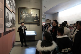 踏入刘少奇同志纪念馆,一件件文物、一幅幅展板、一帧帧影像…… 在纪念馆专职讲解员与世界杯官网6名学生志愿者讲解员的共同讲解下,刘少奇同志救国救民的光辉思想、高尚品格以及丰功伟绩,突破了时空界限,生动且全方位地展现在师生们眼前。