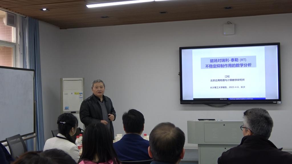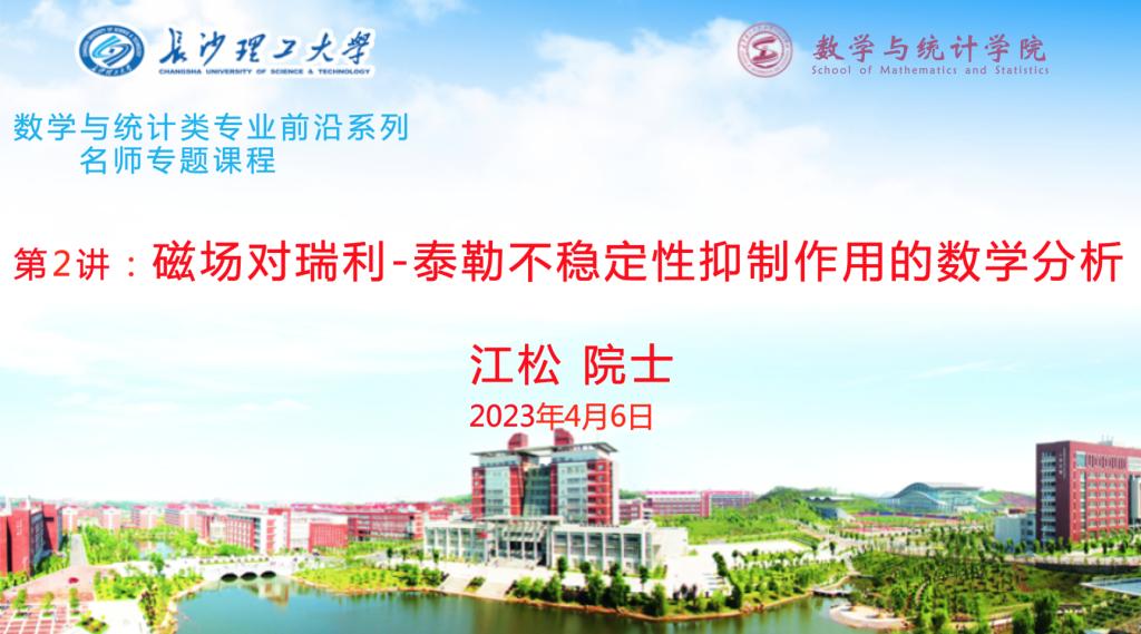4月6日上午,数统学院开展“数学与统计类专业前沿系列名师专题课程”第二讲,特邀嘉宾是中国科学院江松院士,主题为“磁场对瑞利-泰勒不稳定性抑制作用的数学分析”。讲座由在线买世界杯平台副校长黄创霞教授主持。