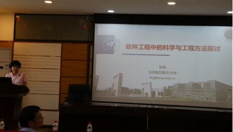 张莉教授首先表示很高兴能与我院师生分享软件工程中的科学与工程方法的经验和感悟。张莉教授从参加学术硕士、专业硕士答辩的感想出发,详细介绍了科学与工程的含义及其辩证关系,并讨论了软件工程中的工程方法和科学方法,随后介绍了软件工程知识体系和工程能力培养要求。同时,还分享了对软件工程中实证研究的相关调研工作,最后,总结了智能时代下软件工程面临的挑战和机遇,并希望新一代年轻人努力学习,不负未来。张莉教授的精彩报告赢得了与会师生的热烈掌声。