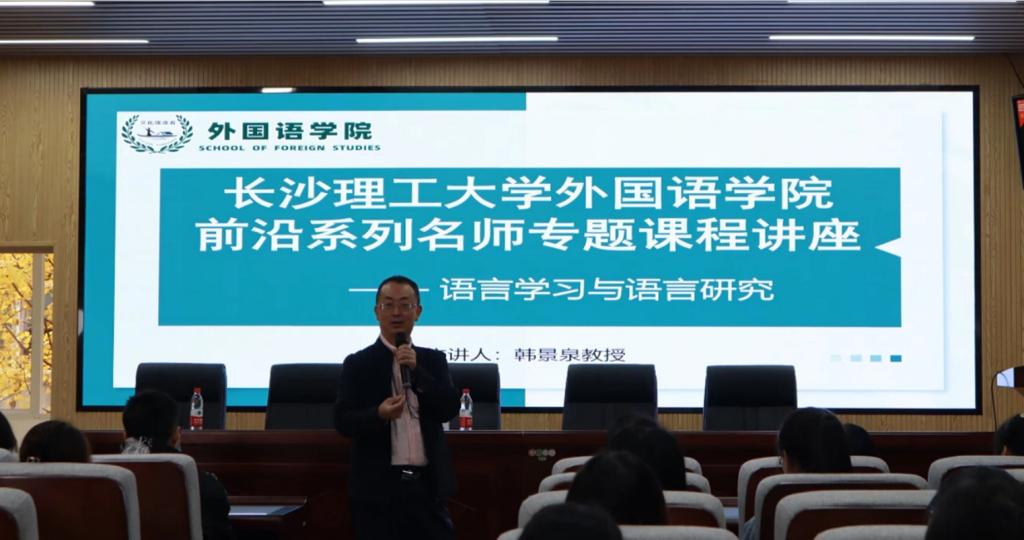 12月8日下午,外国语学院学术前沿系列讲座在在线买世界杯平台金盆岭校区外国语学院214会议室和229报告厅顺利举行。此次,我院邀请到广东外语外贸大学韩景泉教授、莫爱屏教授、冯光武教授为师生讲学。外国语学院季红琴副院长和武俊辉副院长担任此次系列讲座的主持人,200余名师生参加了该学术盛宴。