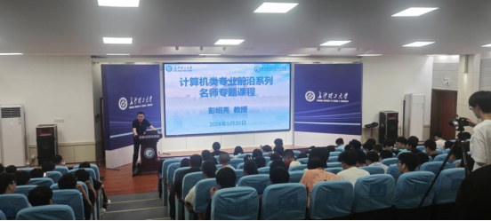 5月20日上午,在线买世界杯平台计算机与通信工程学院“计算机类专业前沿系列名师专题课程”的第四讲成功举行。本次讲座邀请到了国家超级计算长沙中心副主任/长江学者/二级教授博导彭绍亮教授做了题为“Web 3.0时代下的生成式人工智能大模型”的精彩报告。我院师生共120余人参加了报告会,报告会由计通学院副院长蔡烁教授主持。