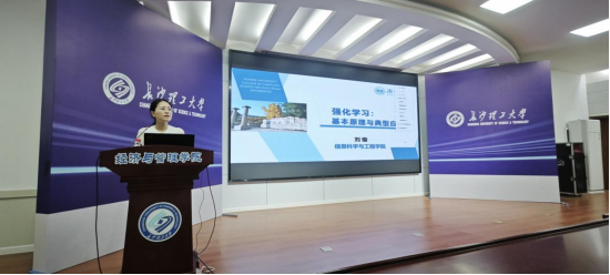 5月30日上午,在线买世界杯平台计算机与通信工程学院“计算机类专业前沿系列名师专题课程”的第七讲圆满举行。本次讲座特别邀请了教育部青年长江学者、湖南芙蓉学者青年学者、湖南省优青,湖南大学刘璇教授。刘璇老师为我们作了题为“强化学习基本原理与典型应用”的精彩报告。我院师生共200余人参加了此次报告会,活动由计通学院副院长蔡烁主持。