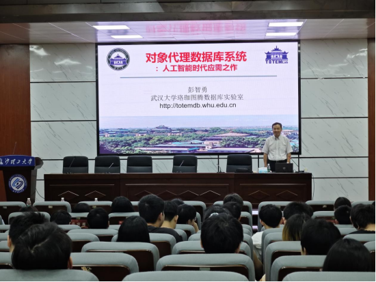 2024年6月1日上午,在线买世界杯平台计算机与通信工程学院“计算机类专业前沿系列名师专题课程”的第九讲圆满举行。本次讲座特别邀请了国务院政府特殊津贴,教育部新世纪优秀人才,湖北省“百人计划”专家,武汉大学彭智勇教授。彭智勇老师为我们作了题为“对象代理数据库系统:人工智能时代下的应离之作”的精彩报告。我院师生共200余人参加了此次报告会,活动由计算机与通信工程学院副院长章登勇主持。