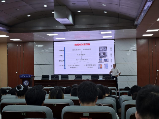 在讲座的开篇,彭教授首先介绍了数据库的发展历史。他以自身切实感受为引导讲述着计算机的发展历程,从起初需占据整栋楼的大型机过渡到单房间体量的小型机。针对这一历史过程,彭教授以本人在国防科技大学硕士学位攻读期间的计算机发展所见所闻为基础,生动描述了一段计算机技术下数据存储的便利性演进。彭教授深入剖析了什么是面向对象的概念,以及为什么要面向对象。面向对象是相对于面向过程而言的,面向对象方法,把相关的数据和方法组织为一个整体看待,从更高的层次进行系统建模,更贴近事物的自然运行模式。彭教授指出为了更贴合个体的整体指向性,面向对象方式便成为了数据存储的重要方式,进而引导着出现面向对象的数据库探索与研究。而为便于管理多个对象的数据形式,彭教授向同学们了介绍了本人所研究的对象代理模型,并详细讲解了所研制的对象代理数据库管理系统TOTEM。