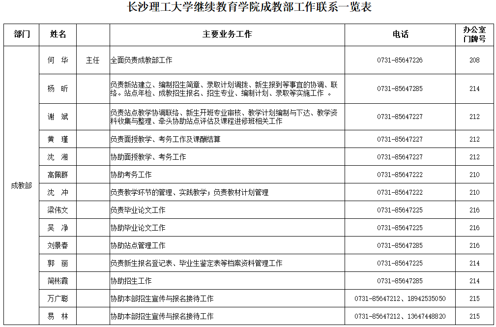 成教部工作联系一览表