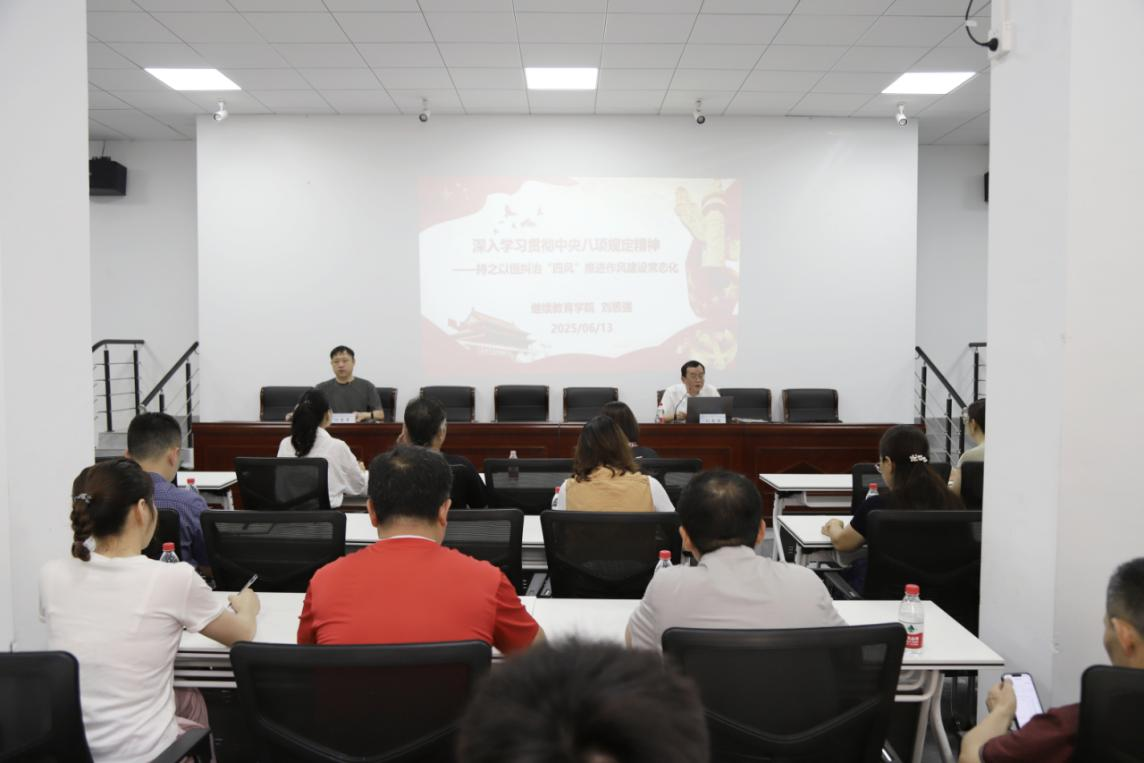 2025年6月13日,继续教育学院在14教118室召开了全院党员会议。学院全体师生党员参加,院党委副书记任艮丰主持。