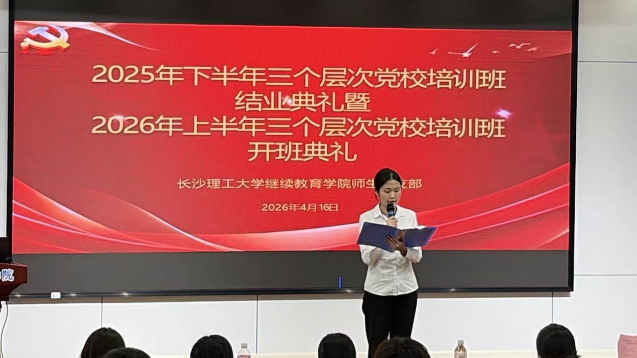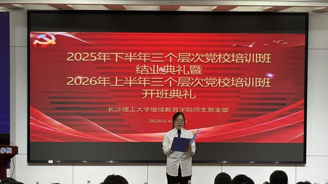 4月16日晚7:00,继续教育学院分党校在12教200会议室举行2025年下半年结业典礼暨2026年上半年开班仪式。院党委副书记、副院长任艮丰,师生党支部书记谭冰,宣传委员曾淑怡,各教学部学工负责人以及全体学员参加了会议。