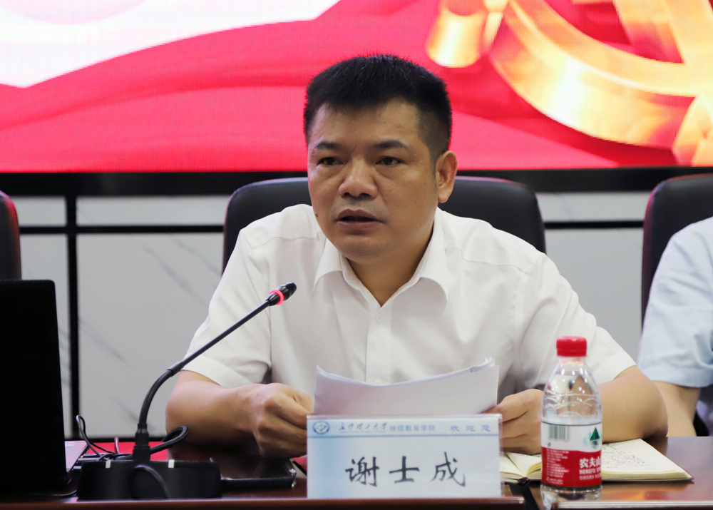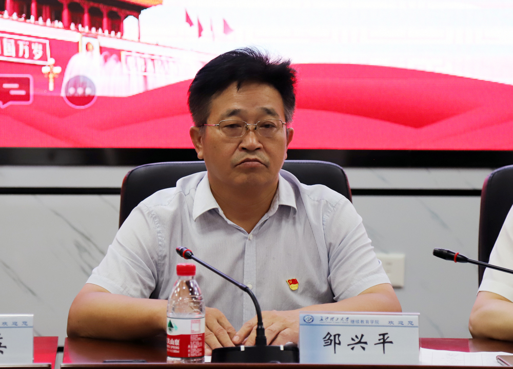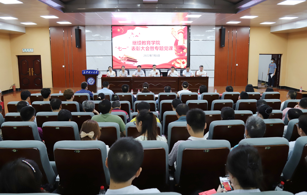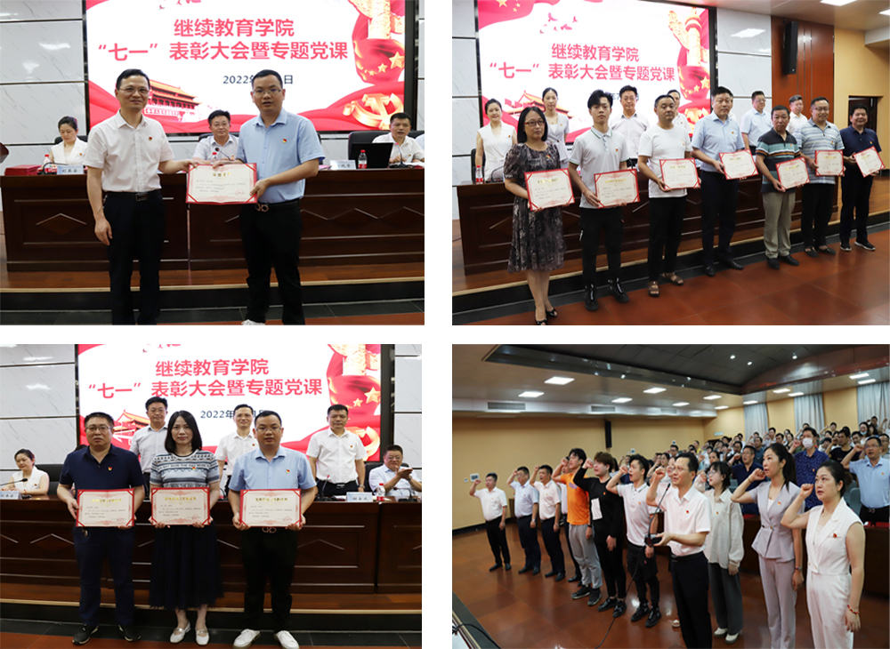 喜迎二十大,永远跟党走,奋进新征程。7月1日上午,继续教育学院召开“七一”表彰大会暨专题党课。党总支书记何纯芳,院长邹兴平,正处级纪检员易贵民,总支副书记谢士成,副院长谢朝华、向英、刘英姿,全院教职工(含外聘职工和合作机构)党员、学生党员代表参加大会。会议由副书记谢士成主持。