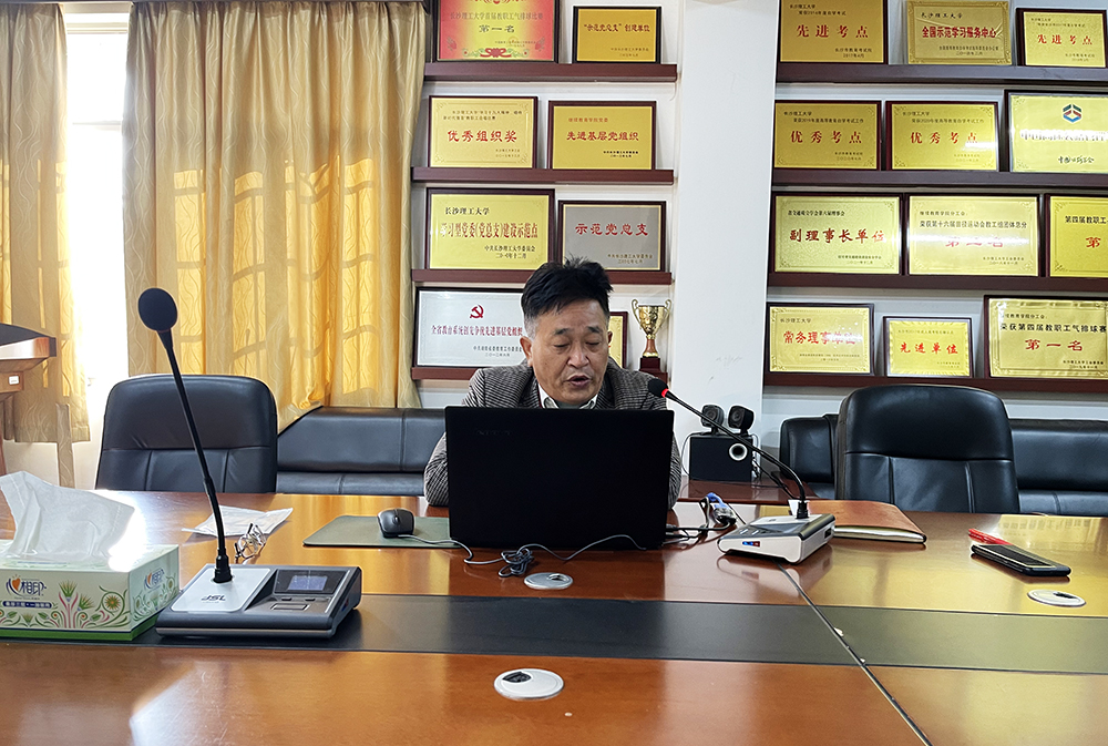为总结继教学院2022年度工作,落实湖南高等学历继续教育违规违纪违法问题自查自纠工作,2022年12月23日上午,继教学院以15教三楼会议室为主会场,召开了学院全体职工视频会议。会议由学院党总支书记何纯芳主持,学院党政班子成员、各部门主任和全体职工参加了会议。