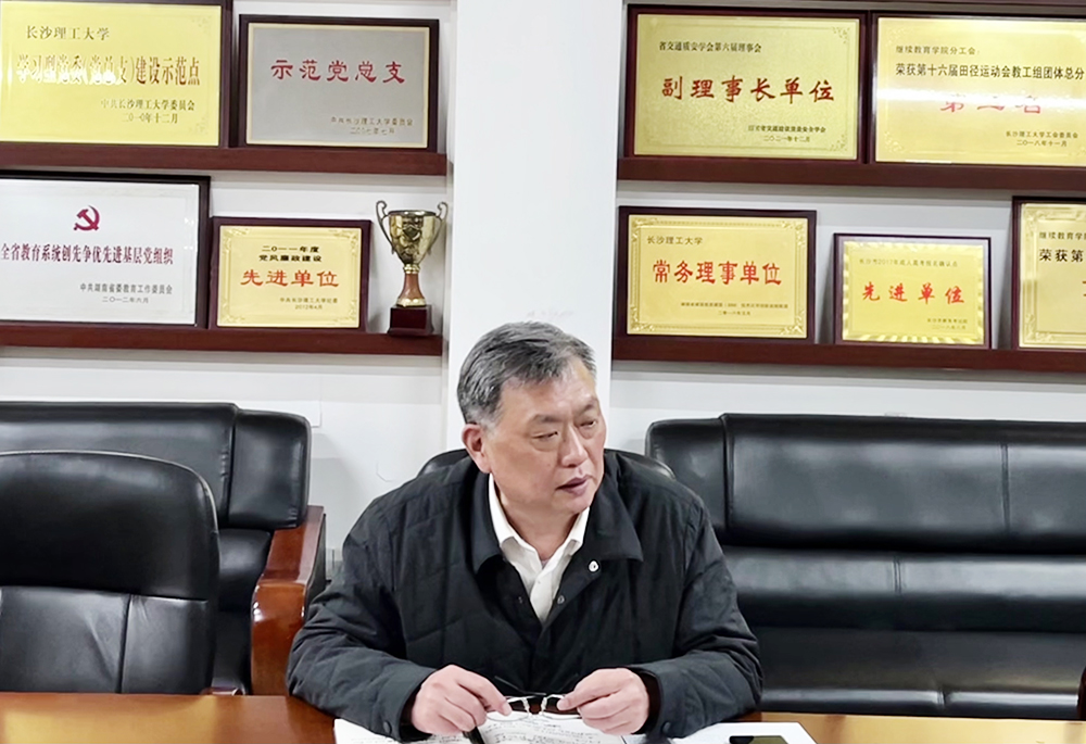 他希望继教学院领导班子要进一步强化理论武装,提高政治判断力、政治领悟力、政治执行力,贯彻好党的二十大精神,敢于担当,以务实作风落实校党委决策部署;要弘扬历史主动性精神,深入改革,大胆创新,闯出继续教育发展新路子;要弘扬斗争精神,打造踏实干、作风严的干部队伍,各自承担起主体责任,不推诿、不躲避;要强化风险防范,以时时放心不下的责任感加强学院管理,确保继教学院安全稳定。