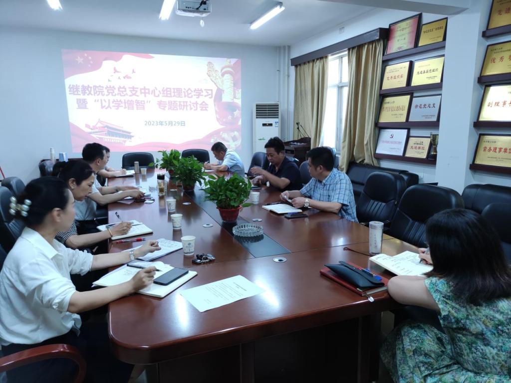 2023年5月29日下午,继教学院党总支理论学习中心组在金盆岭校区15教学楼三会议室举行了理论学习暨“以学增智”专题研讨会,院党总支书记何纯芳主持,学院党总支委员参加会议,会上谢士成副书记和谢朝华副院长做中心发言。