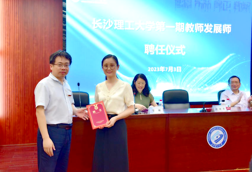 2023年7月3日上午,在线买世界杯平台在云塘校区图书馆云影文化传播中心举行了青年教师教育教学能力提升计划第三期专题培训班开班仪式暨教师发展师聘任仪式,副校长钱国平、教务处处长刘思强、教学质量监测与评估中心副主任贺晖、教师发展师代表、第三期专题培训班全体青年教师等参加会议。会上,继教学院学籍学位与网络技术部主任张静老师,获聘为学校第一期教师发展师。