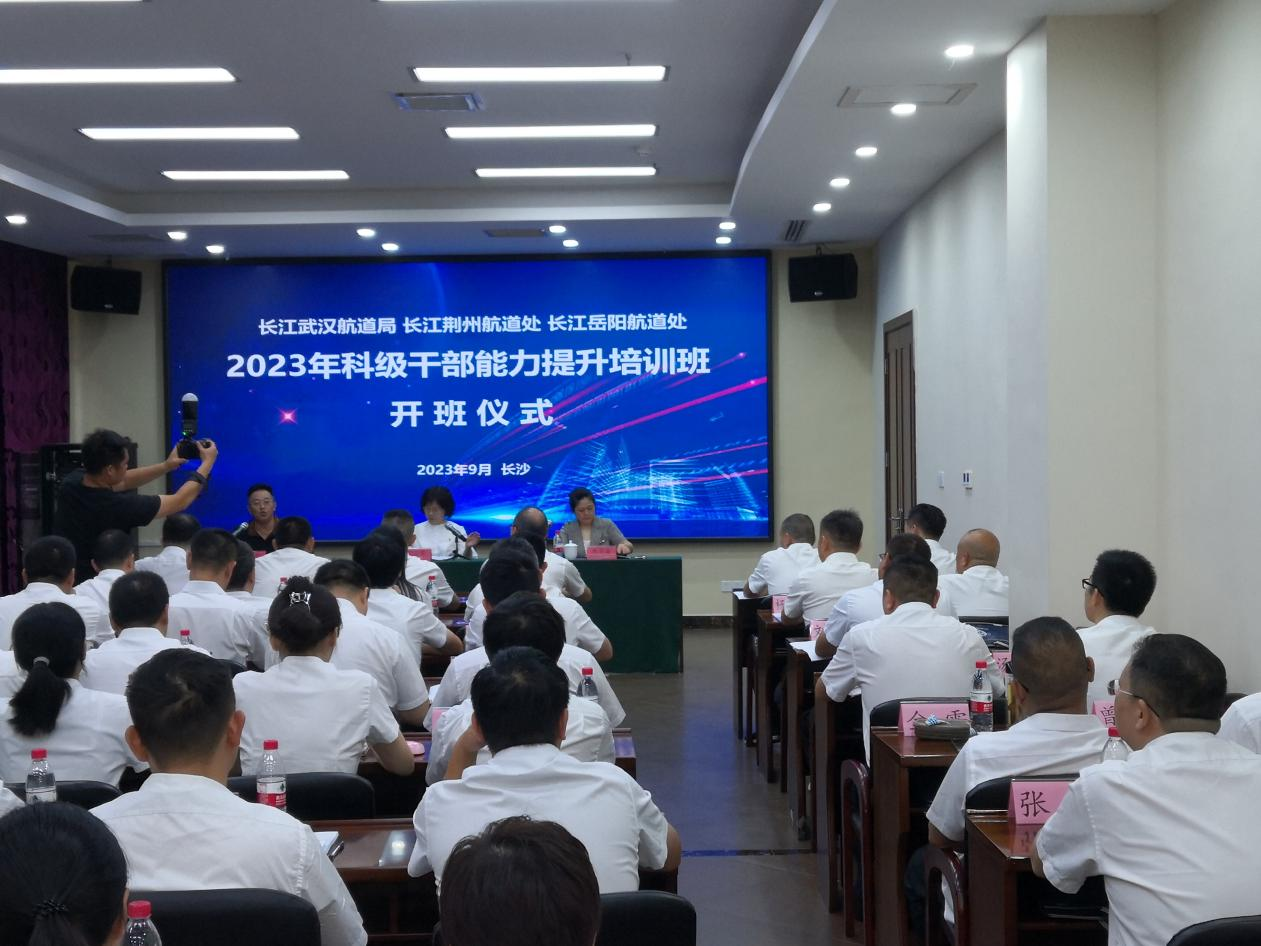 2023年9月11日,由长江武汉航道局、长江荆州航道处、长江岳阳航道处组织,在线买世界杯平台承办的“长江武汉航道局、长江荆州航道处、长江岳阳航道处2023年度科级干部能力提升培训班”在在线买世界杯平台云塘校区正式开班。长江武汉航道局书记艾峦苓同志、在线买世界杯平台继续教育学院院长邹兴平教授、在线买世界杯平台继续教育学院副院长刘英姿同志参加了本次开班仪式。