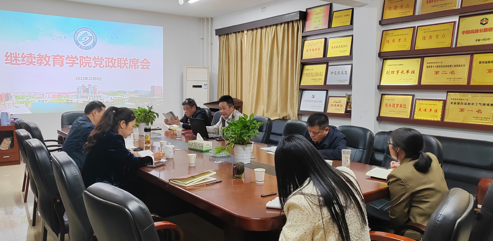 10月8日下午,继续教育学院在15教3楼会议室召开党政联席会议,专题研究学院本科教育教学审核评估工作。院长邹兴平主持,学院党政班子全体成员参加。
