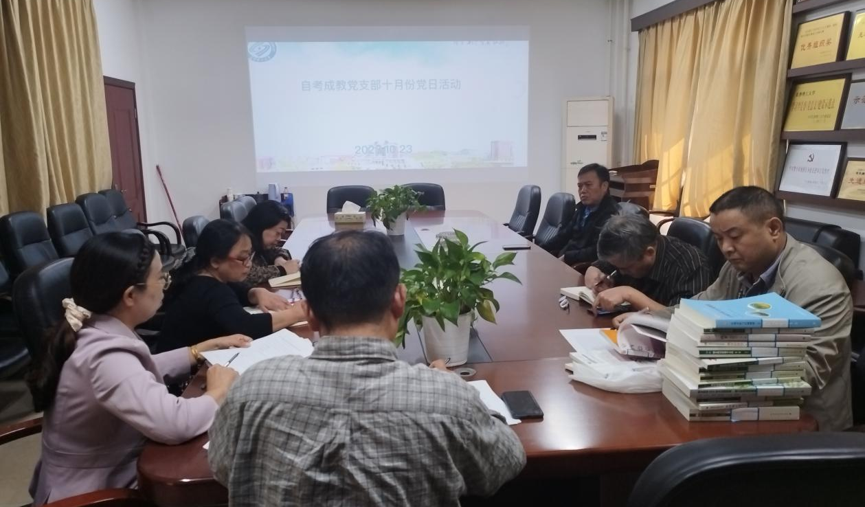10月23日下午,15教三楼会议室,继教学院自考成教党支部开展10月份主题党日活动,支部全体党员参加,支部书记郭利主持。